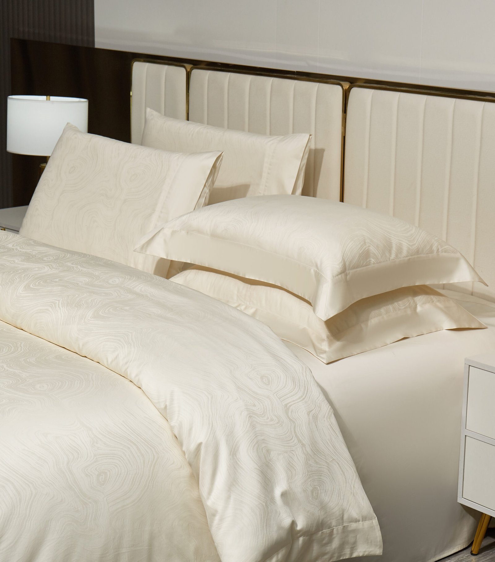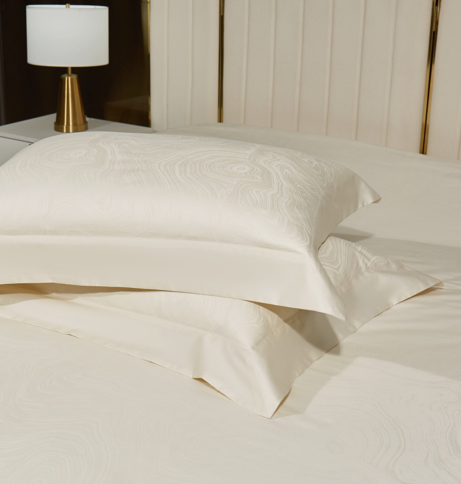 Maison Valor’s Bree Bedset is a statement of modern elegance, woven with top-quality 100% cotton jacquard. Its rich texture and subtle pattern capture the essence of luxury while the natural cotton fabric ensures breathability and comfort. Designed with meticulous attention to detail, Bree invites a plush and sophisticated sleep experience. Available in Queen, King, and Super King sizes, it is made for those who seek a perfect synthesis of artistry and premium comfort in their bedding.